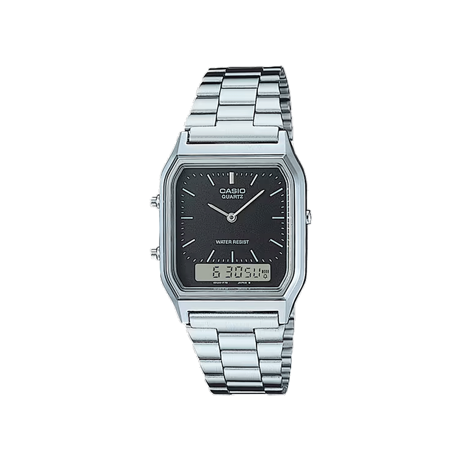 AQ‑230A‑1DMQ: diseño clásico analógico-digital con estilo vintage en negro