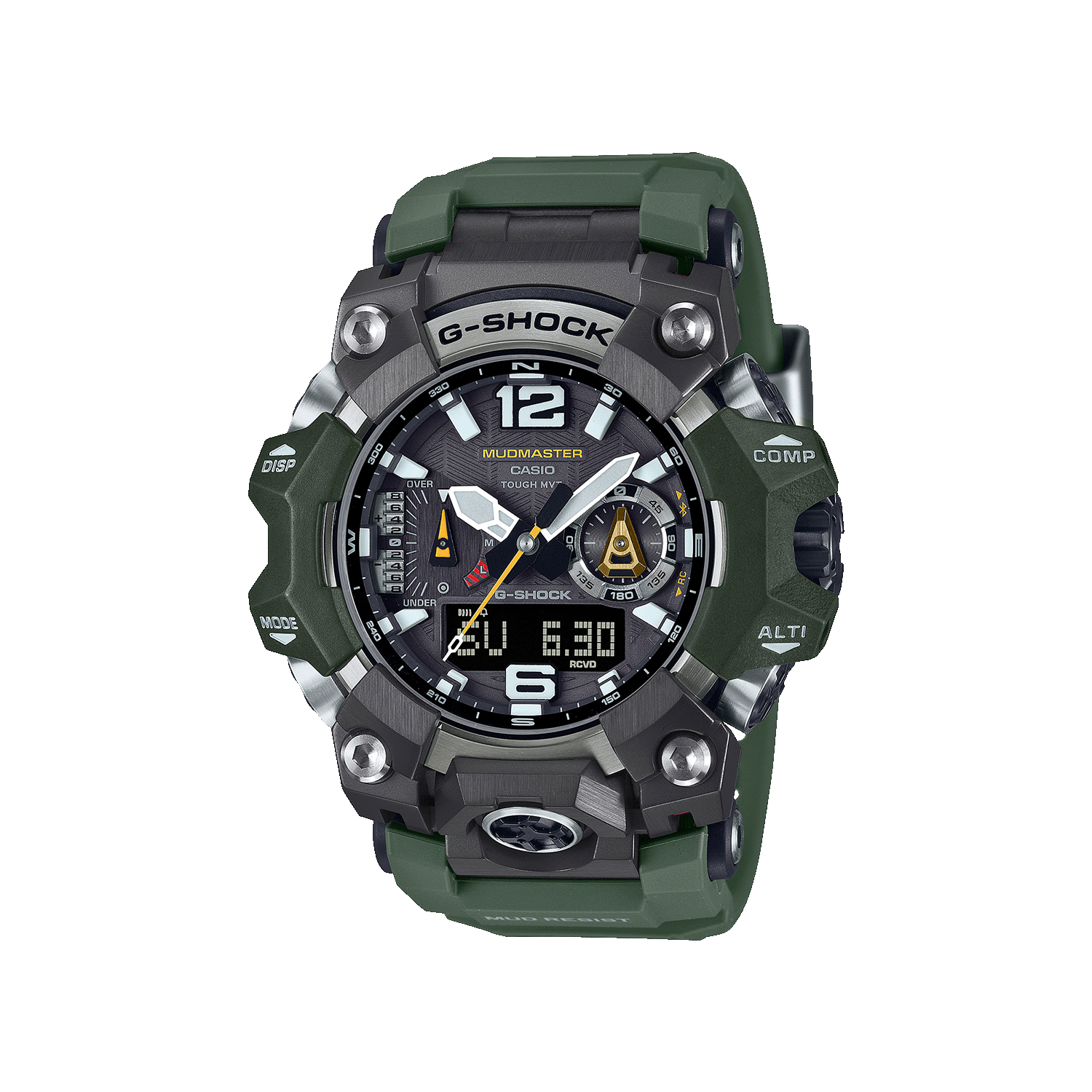 El GWG‑B1000‑3ADR es uno de los modelos más avanzados de la línea Mudmaster de Casio, diseñado específicamente para enfrentar condiciones extremas. Este reloj combina resistencia, tecnología de última generación y un diseño robusto en tono verde militar que lo convierte en una herramienta imprescindible para aventureros, profesionales y amantes del outdoor.