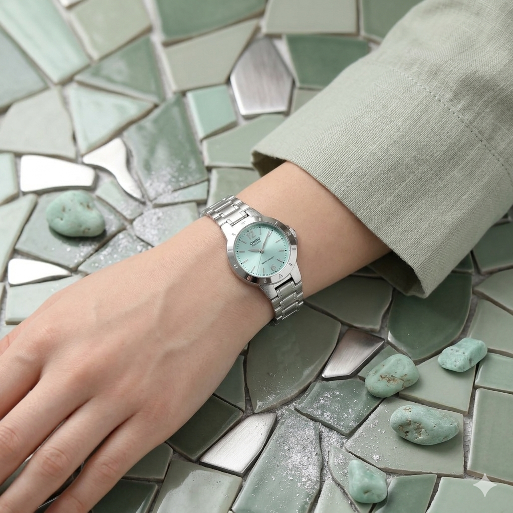 El LTP‑1177A‑3ADF es un reloj analógico femenino de Casio que combina elegancia clásica con un toque moderno gracias a su distintiva esfera verde. Este modelo es perfecto para mujeres que buscan un accesorio sofisticado, versátil y diferente para el uso diario en Perú.