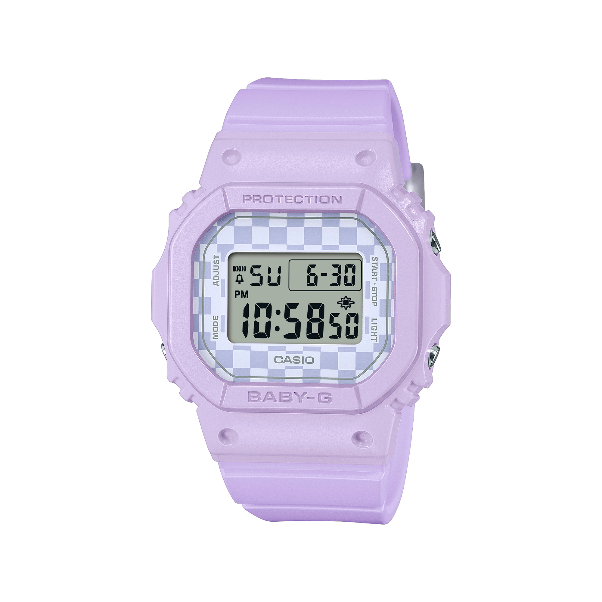 Reloj Casio Baby‑G BGD‑565GS‑6D: diseño compacto y resistente con estructura tipo G‑Shock, acabado en tono lila y funciones digitales completas. Ideal para mujeres activas que buscan estilo deportivo, durabilidad y rendimiento en el día a día.