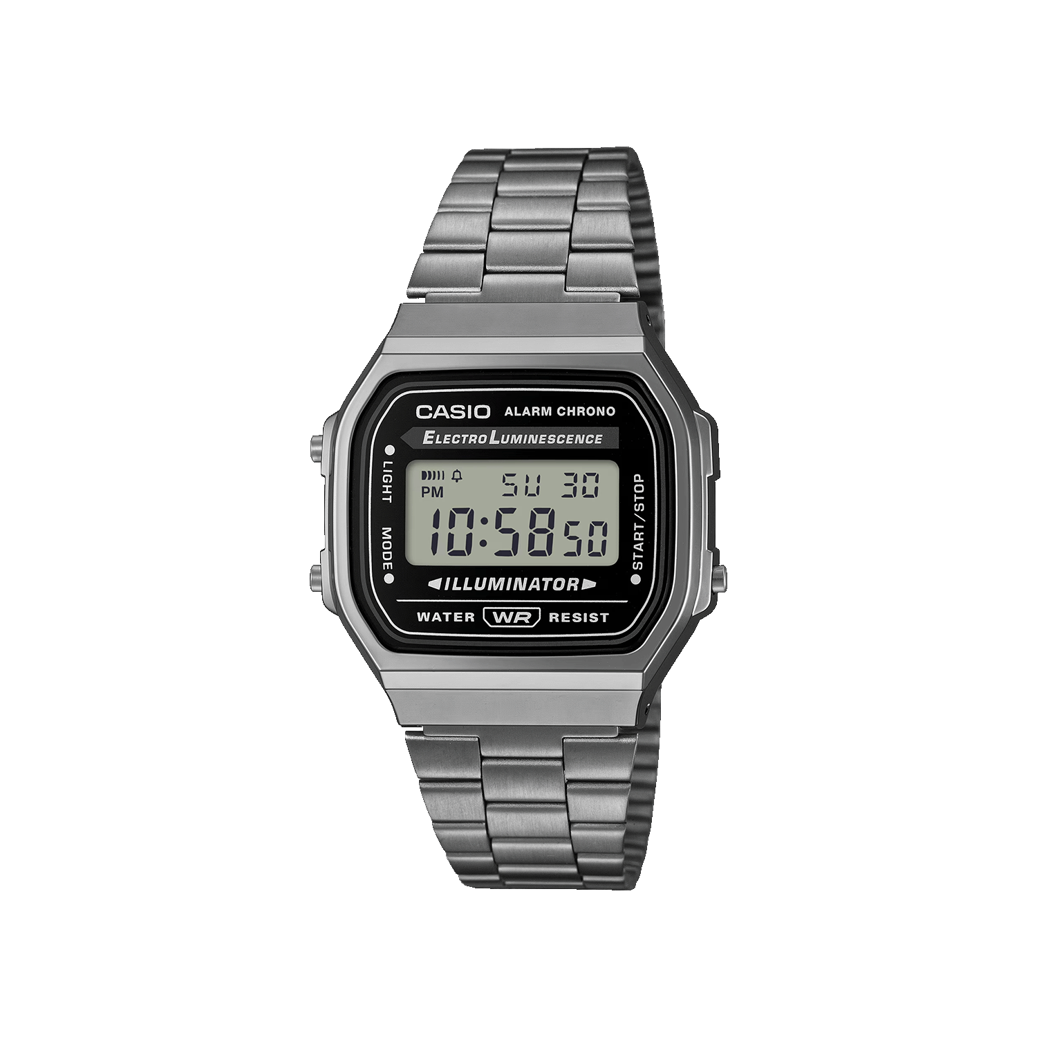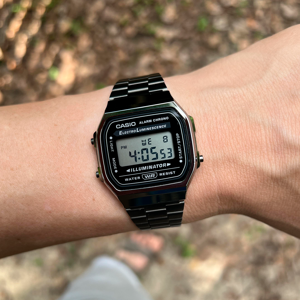 El Casio A168WGG‑1ADF pertenece a la icónica colección Casio Vintage, reconocida por sus diseños retro inspirados en los relojes digitales clásicos de los años 80. Este modelo destaca por su elegante acabado gris gunmetal combinado con pantalla negativa, logrando un estilo moderno y sofisticado.
