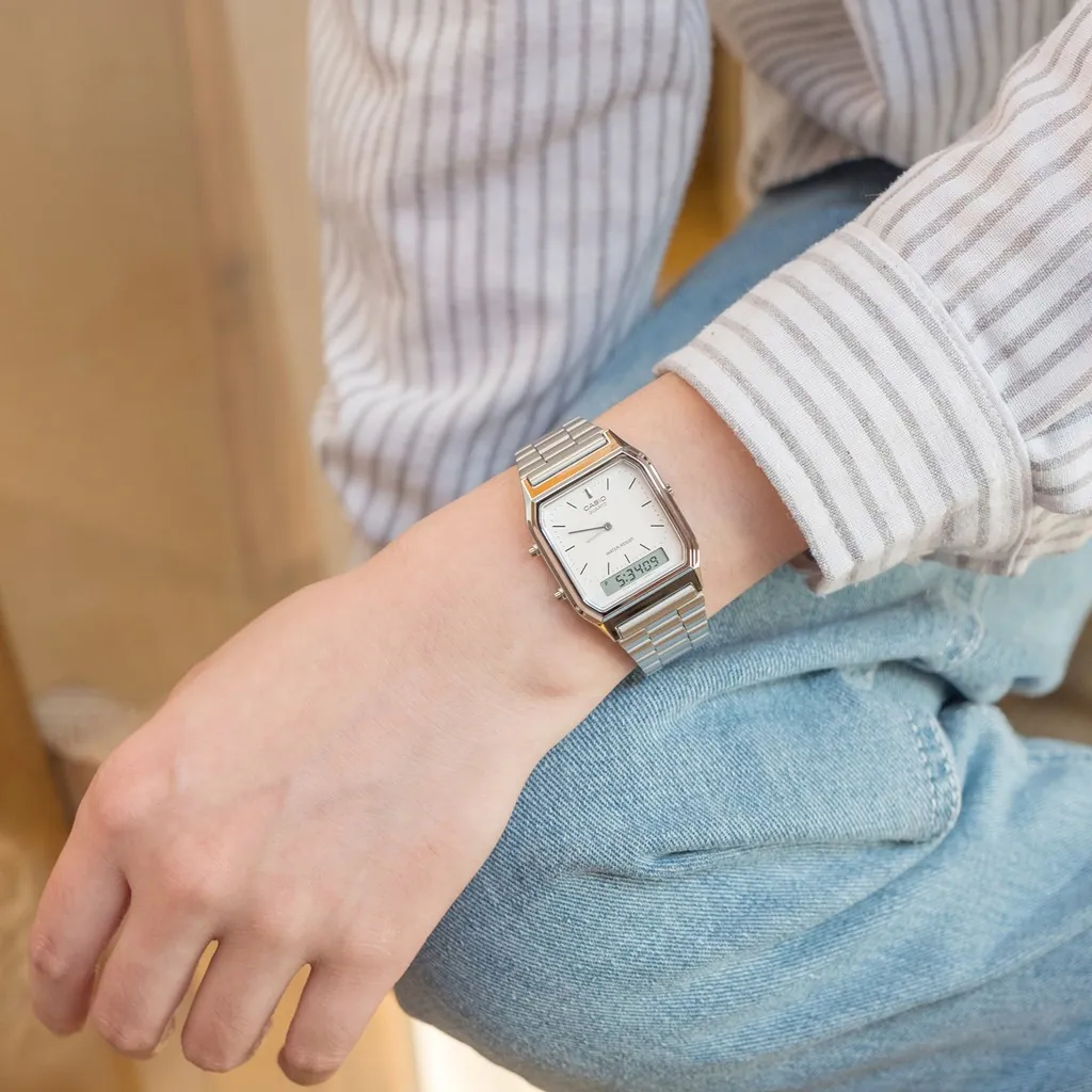 Reloj Casio AQ‑230A‑7DMQ Unisex — Clásico Analógico‑Digital en Acero Inoxidable