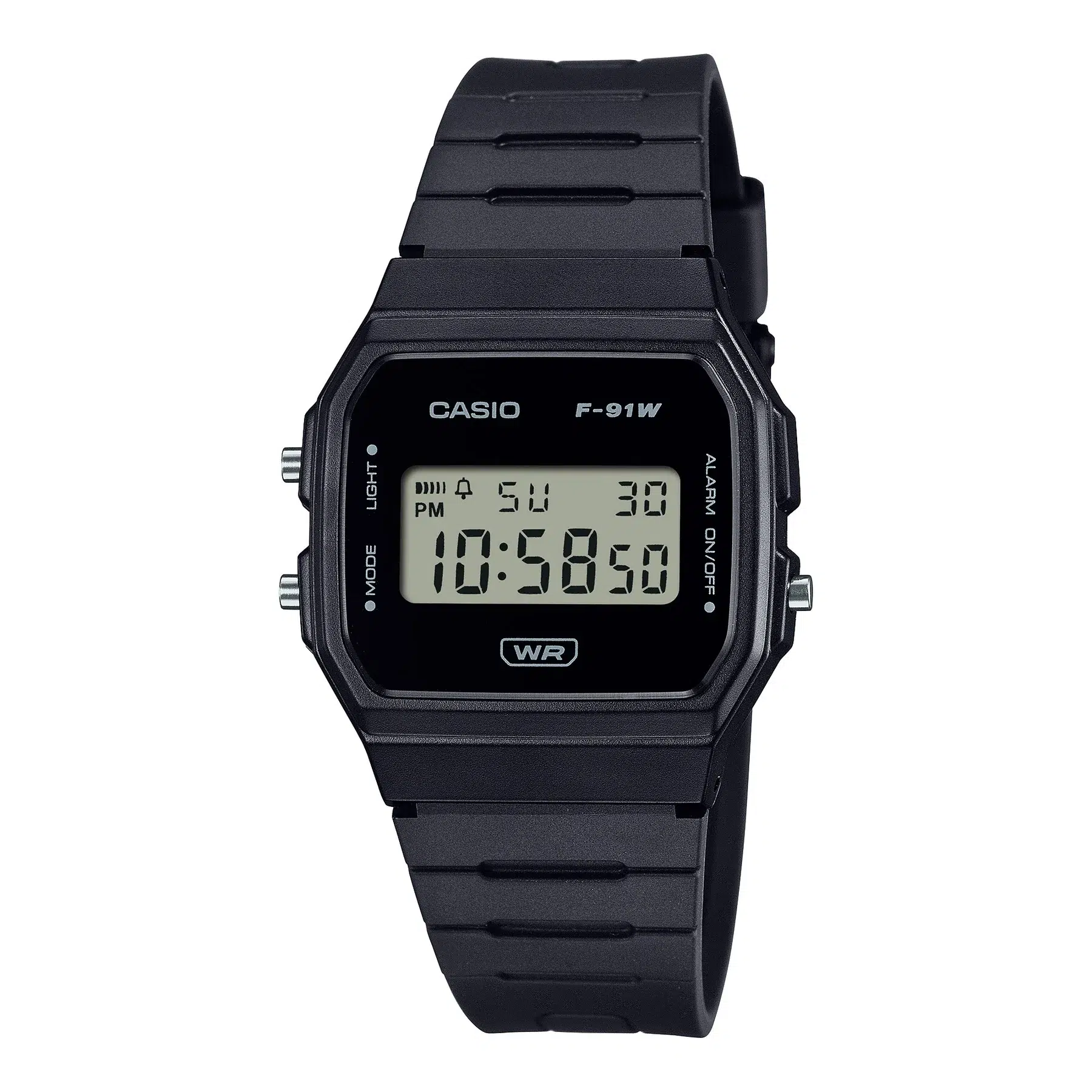 El Casio F-91WB-1A es un reloj digital unisex que mantiene el icónico diseño del legendario F‑91W, incorporando un acabado negro moderno que se adapta perfectamente a cualquier estilo. Es una opción funcional, ligera y confiable para el día a día.