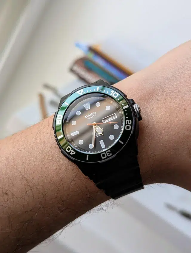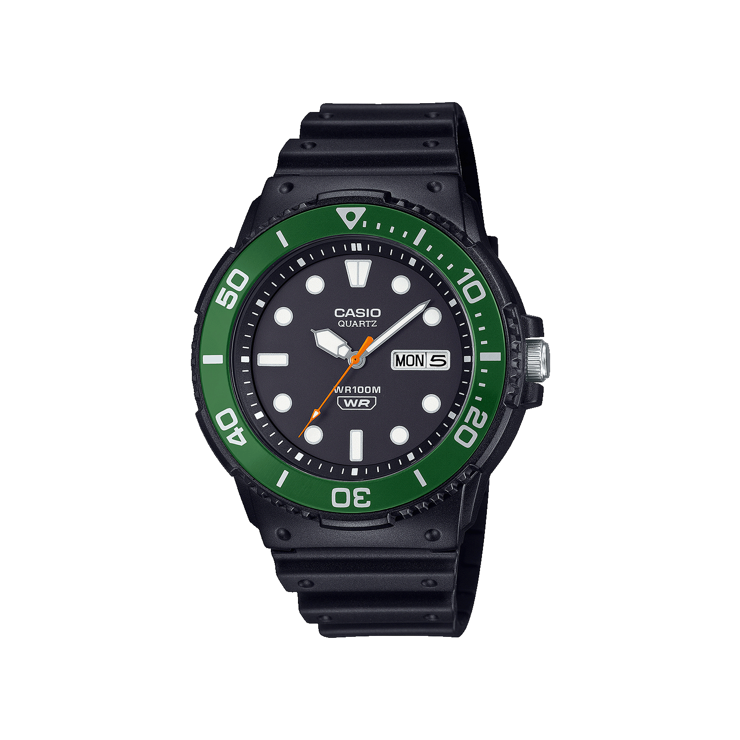 El Casio MRW‑230H‑1E3 es un reloj diseñado para quienes buscan resistencia, funcionalidad y estilo deportivo. Su combinación de resina negra con detalles en verde le da un aspecto moderno y dinámico.