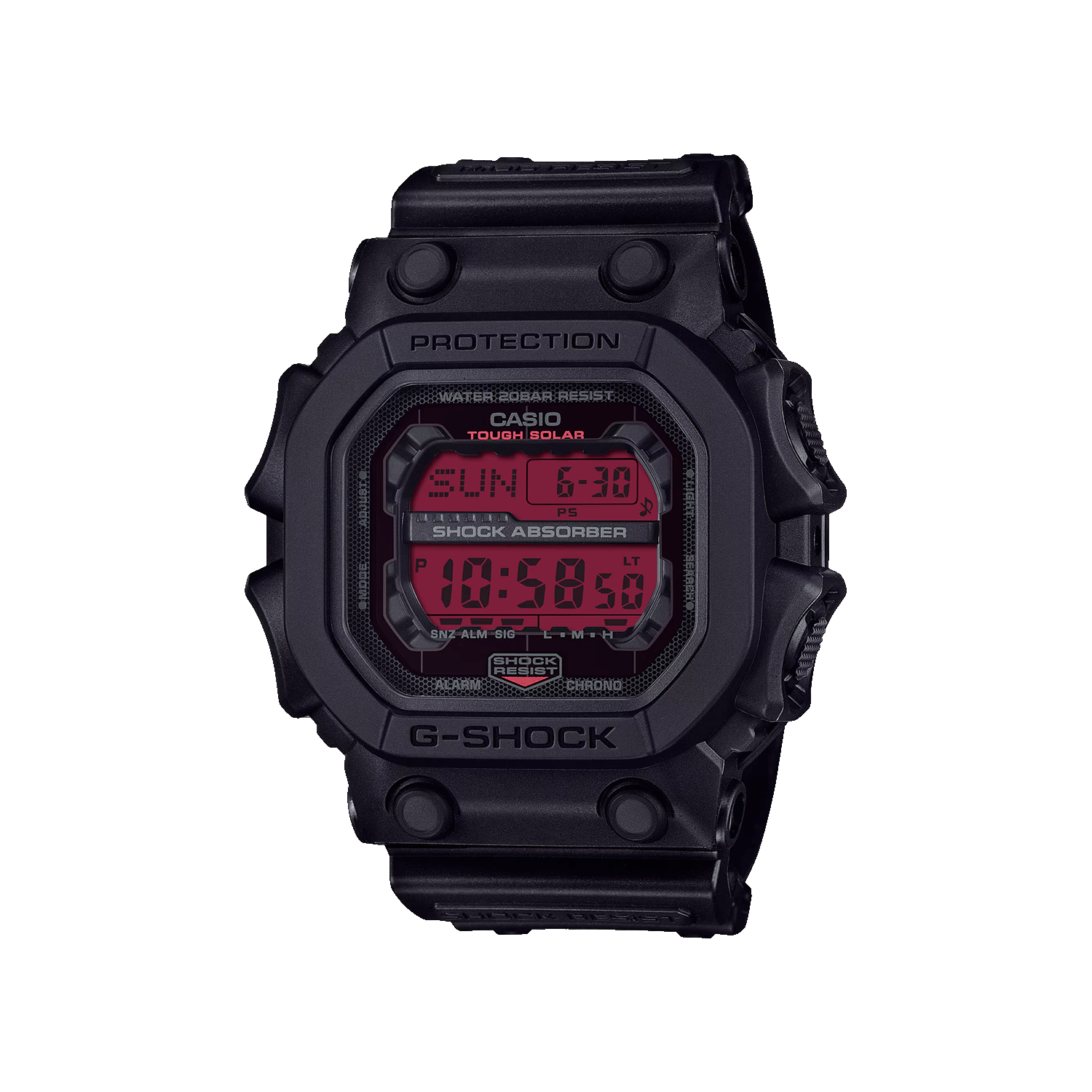 El Casio G‑Shock GX‑56BBR‑1DR, conocido como King G‑Shock, es uno de los modelos más resistentes de la marca. Su diseño completamente negro y su estructura reforzada lo convierten en la opción ideal para condiciones extremas.