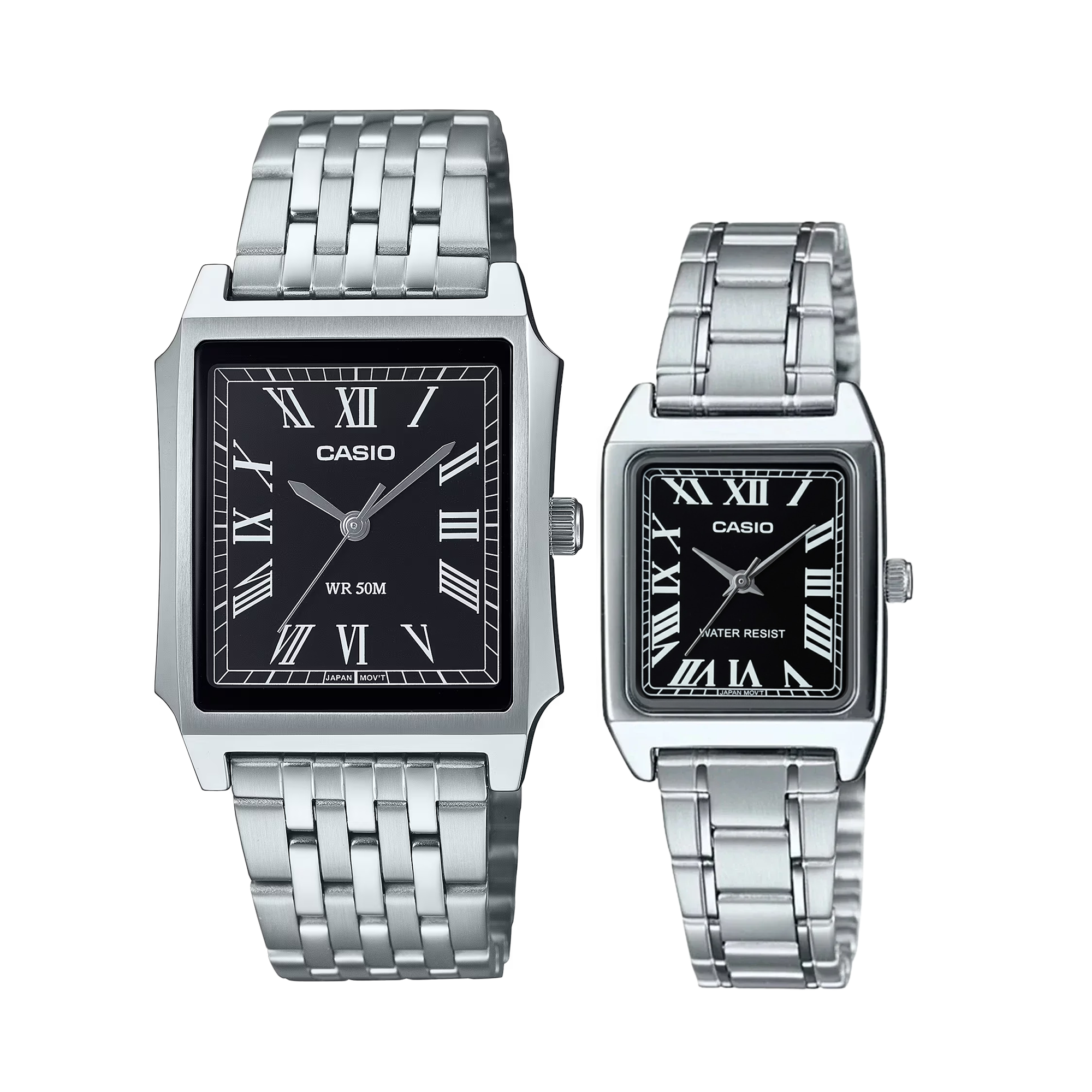 Set de Relojes Casio para Pareja – MTP-B190D-1BV y LTP-V007D-1B — Clásico Plateado con Estilo Atemporal